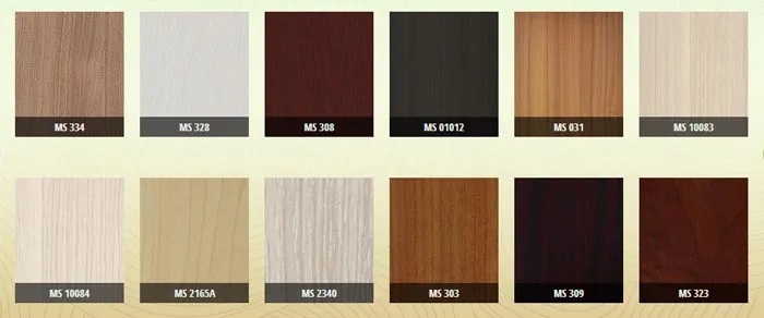 Nếu làm mẫu veneer thì ép thêm hai lớp veneer tạo nên bề mặt vân gỗ thật và liền lạc, lớp vân veneer được ép lên bề mặt đa dạng và phong phú. Bảng màu của cửa gỗ veneer sẽ có 6 mẫu vân gỗ.
